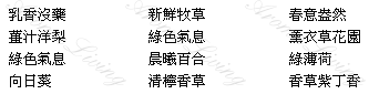 *~*~*~*~*~*~*~*~*~*~*~*~*~*~*~*~*~*~* | 蘋果花 | 酪梨胡荽葉 | 黑醋栗葡萄柚 |